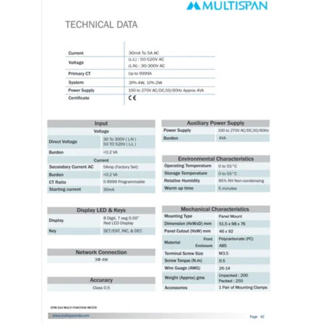 - Aux. Supply: 100-270V AC, 50/60 Hz