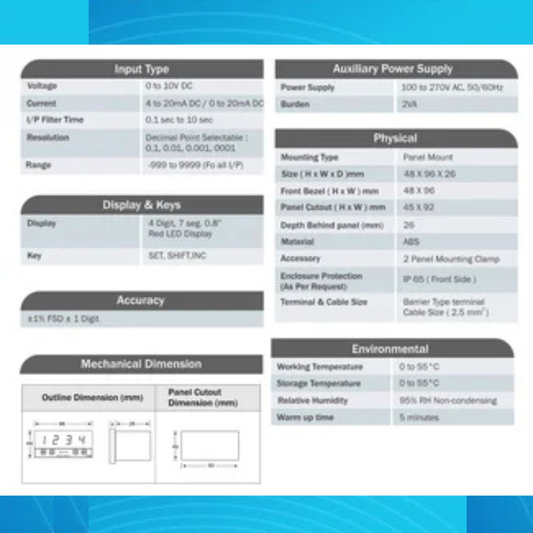 | 4 – 20mA DC | -999 To 9999 | |||